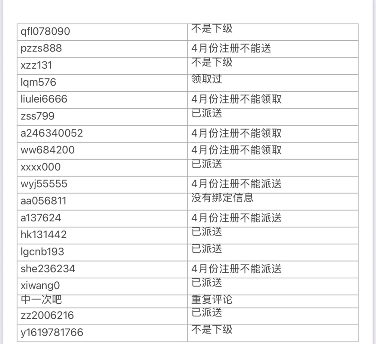 注册于5月前/重复评论/未绑定姓名/不是下级,均不送。其他的都到了,不限制游戏/3杯水/无提款上限/禁多IP