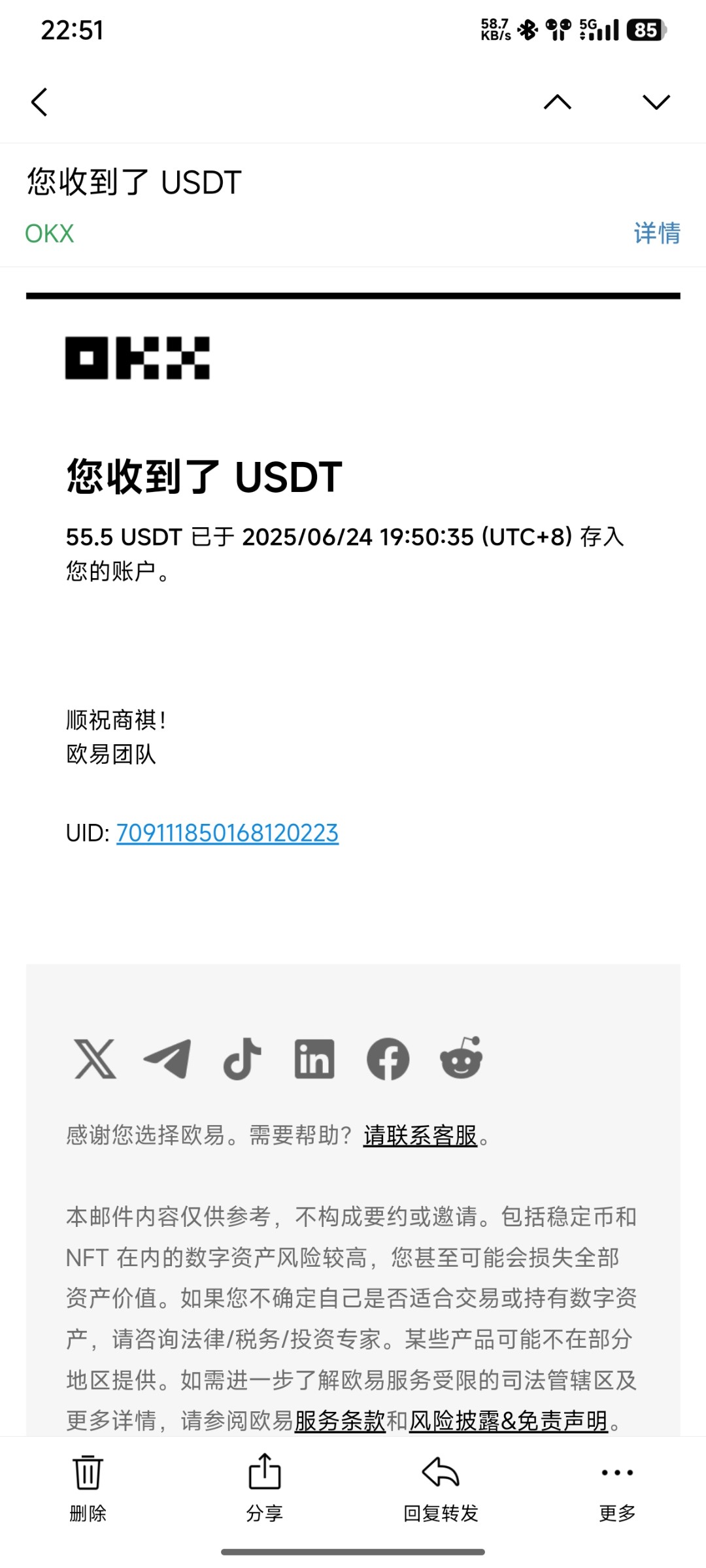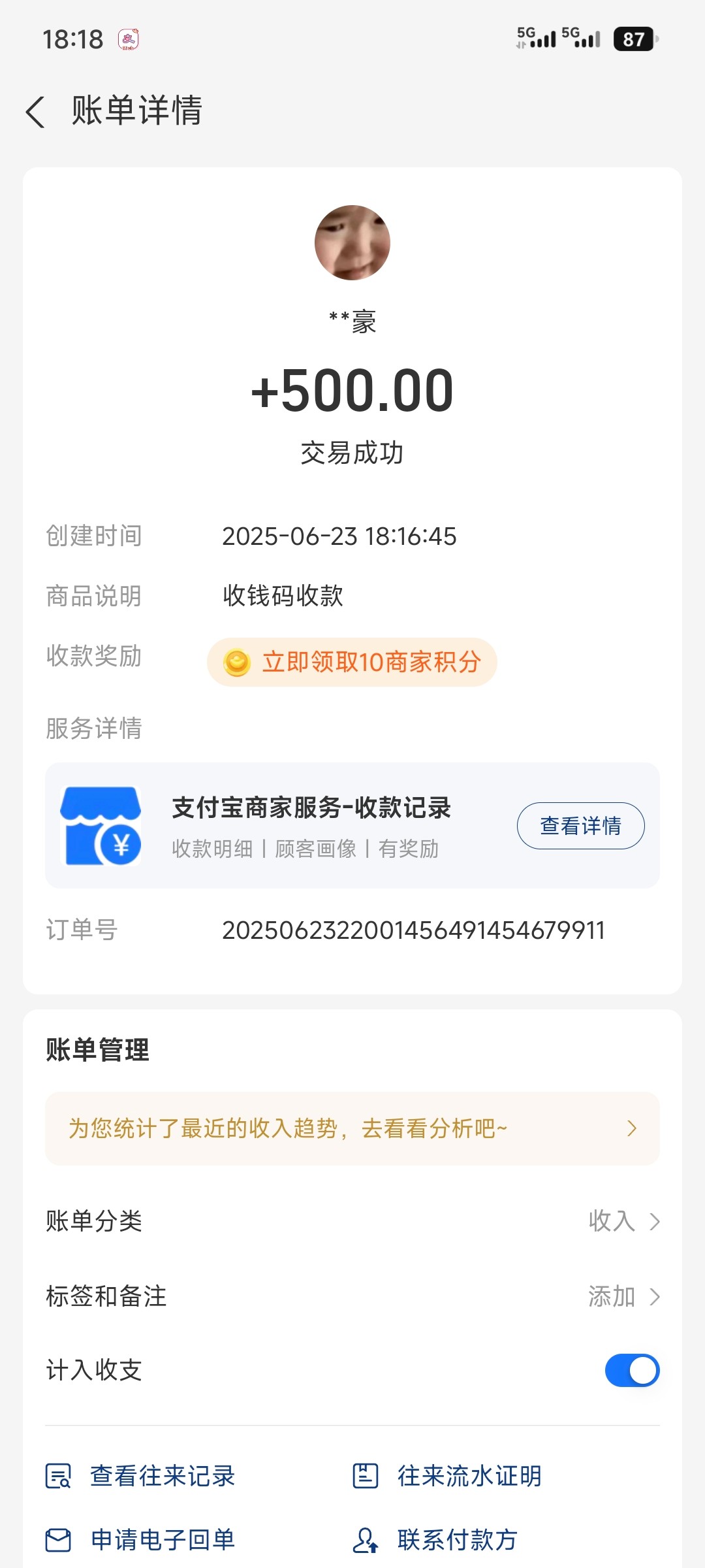 返现到账