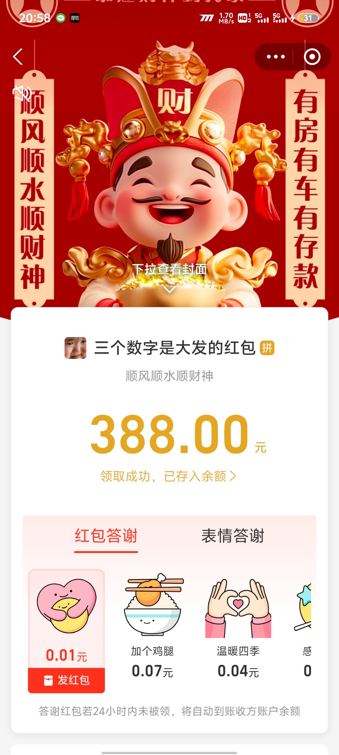 成功吃上了。1张下20张