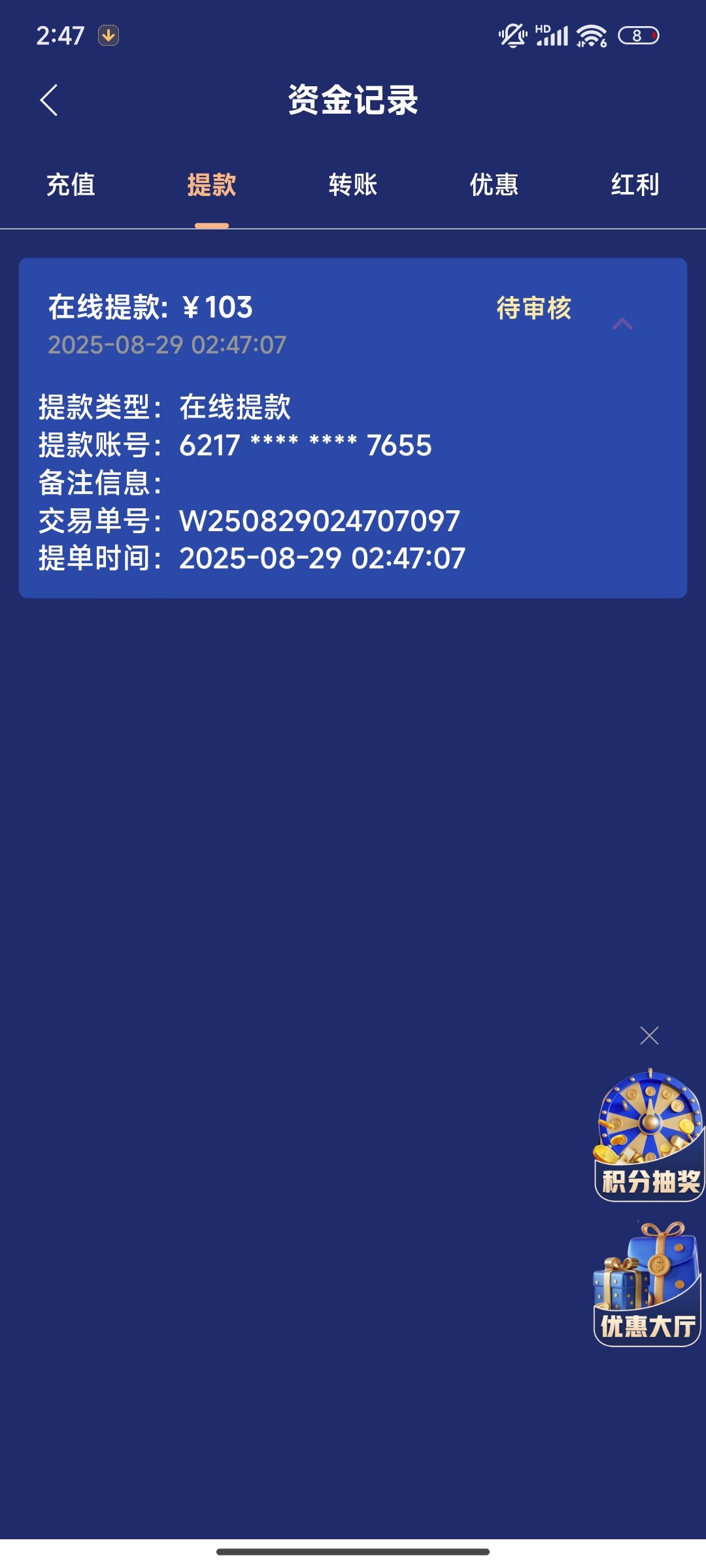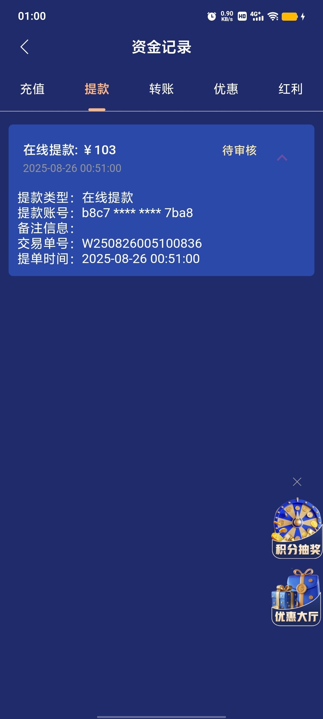 @故人 ,打4万都没用,只能提100块儿。