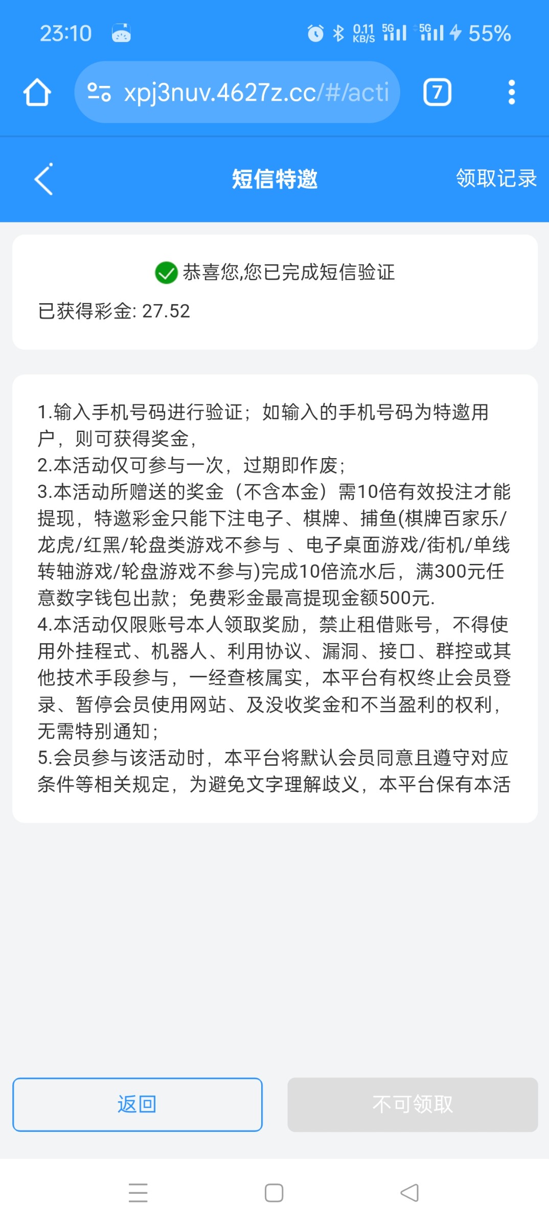有特邀的自助领取18,没有的可以去旺旺找专员签到都会送,签到第一天送2第二天送6第八天送18,彩金只能打电子棋牌捕鱼没充值的要打六倍水,旺旺专员608031586链接 4627h.com
