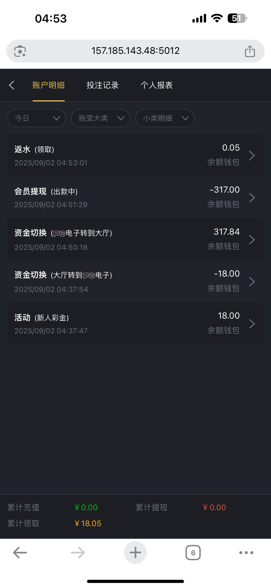 不在名单中,充值了10R提了100,跑路