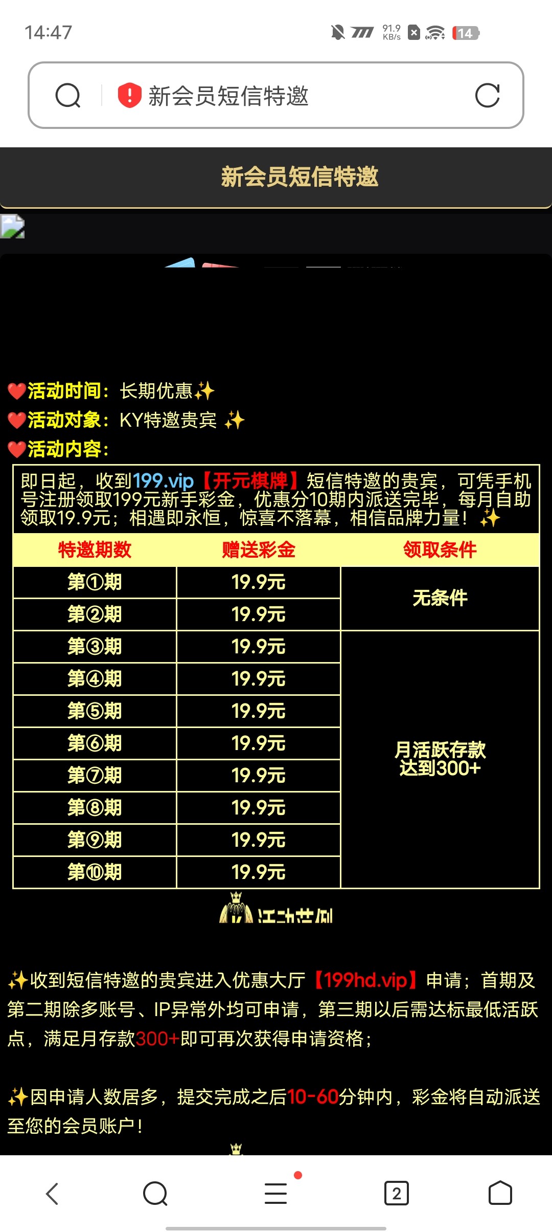 点击申请彩金